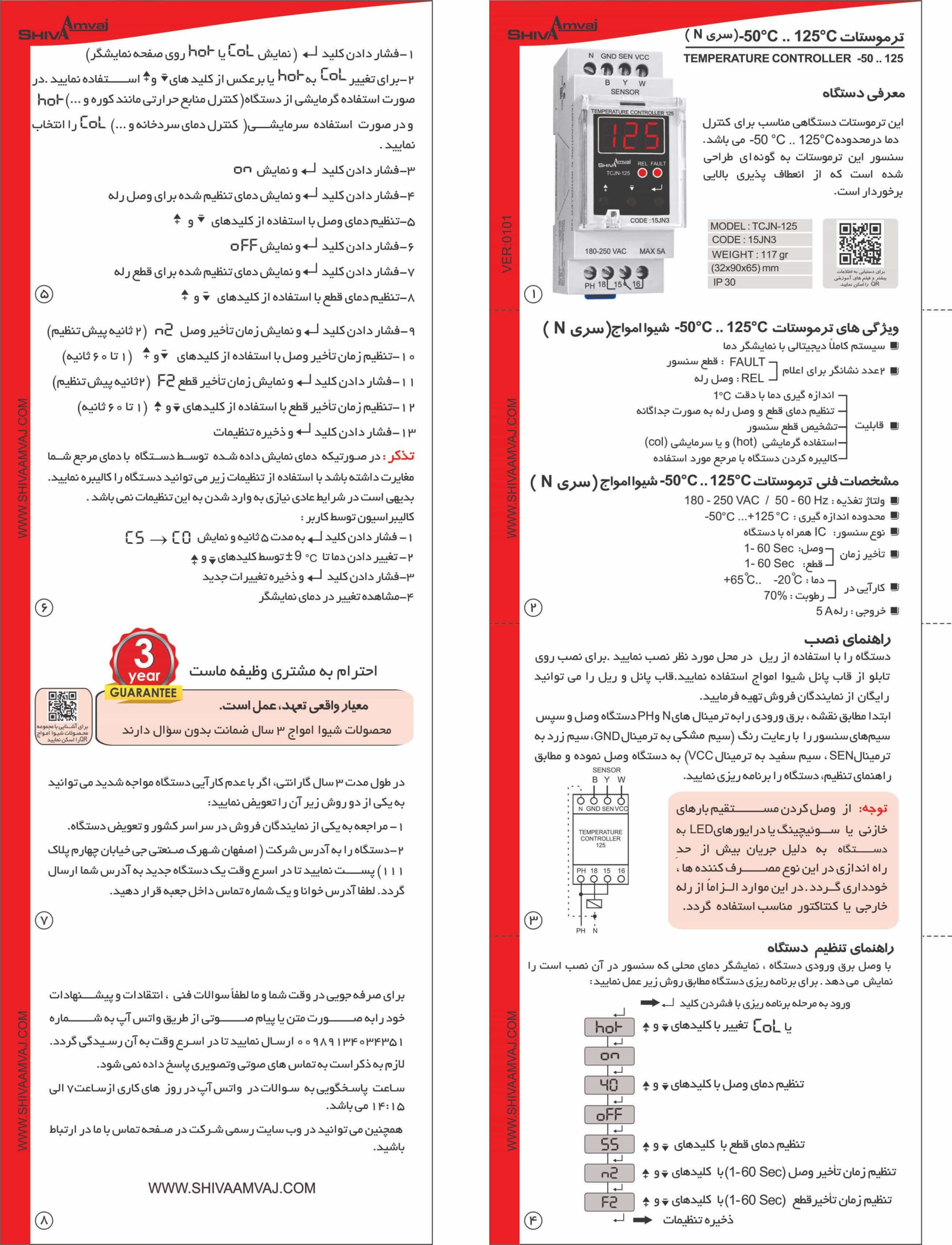 ویژگی های ترموستات ۵۰- درجه سانتیگراد تا ۱۲۵+ درجه سانتیگراد شیواامواج