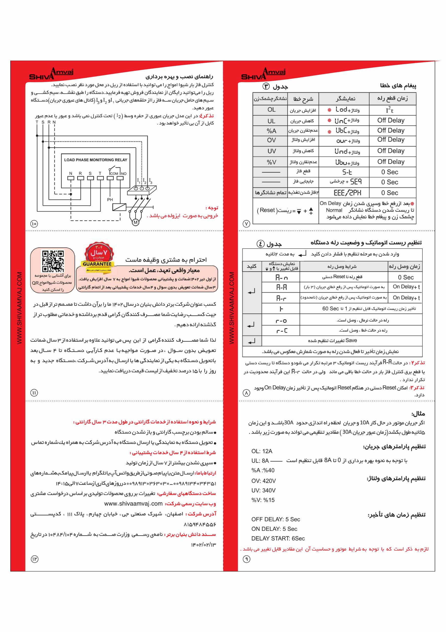 • نمایش جریان، مقادیر تنظیمی و پیغام های خطا